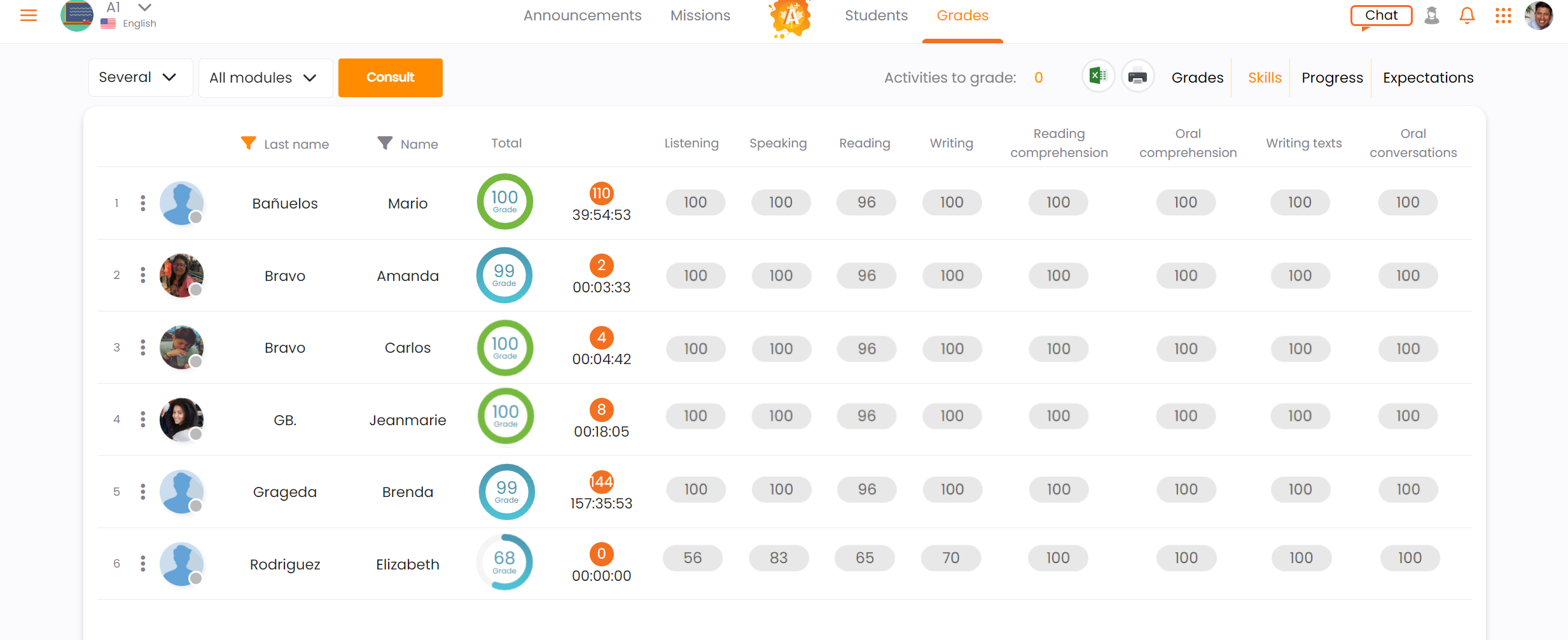 It ensures that every student gets the necessary practice in the four linguistic skills, enabling the teacher to offer personalized help and eliminate academic gaps as soon as they appear.